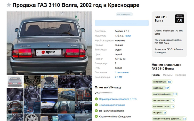 По информации издания "Российская газета", на автомобильном рынке появился уникальный экземпляр - ГАЗ-3110, который за 19 лет проехал лишь 13 159 километров. Владелец решил расстаться со своим "железным другом" за сумму в 950 тысяч рублей.